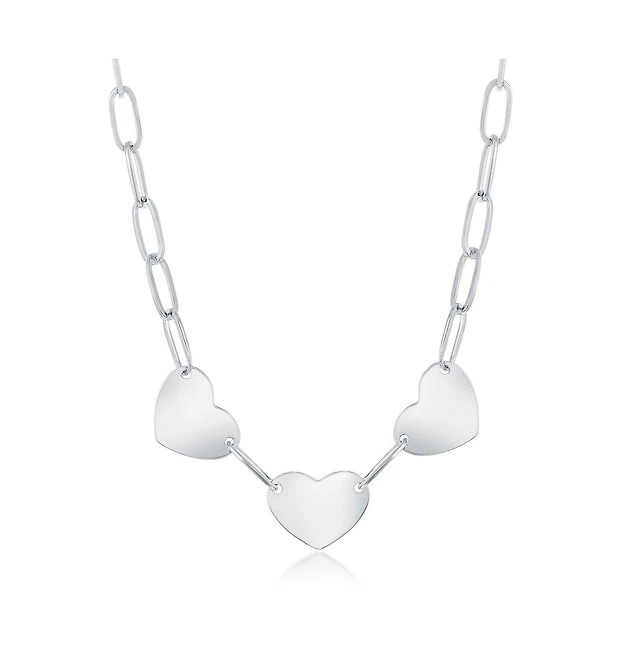 Caribbean Treasures Sterling Silver Triple Heart Necklace (Available Lapis, Malachite or Kyanite)