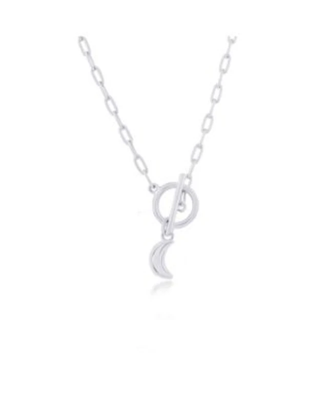 Simona Sterling Silver Crescent Moon Charm Paperclip Toggle Necklace