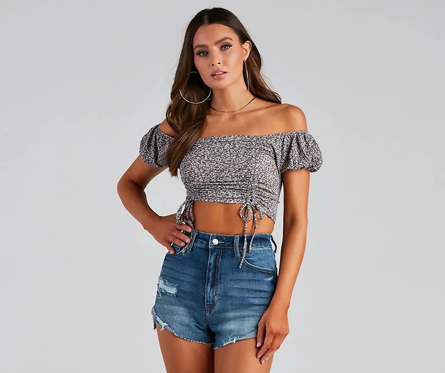 A Ruched Romance Floral Crop Top