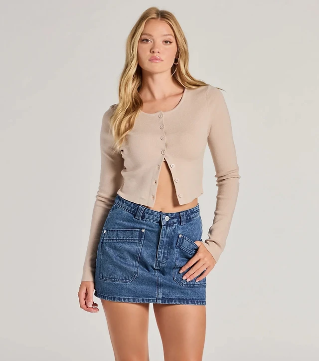 Total Perfection Mid Rise Denim Mini Skort