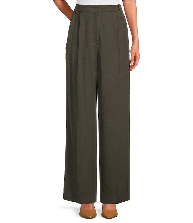 Gibson & Latimer Woven Contrast High Rise Pleated Wide Leg Coordinating Trousers