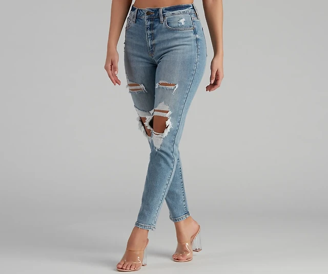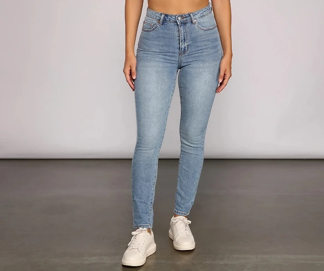 High Waisted Light Wash Cuffed Hem '90s Slim Jeans
