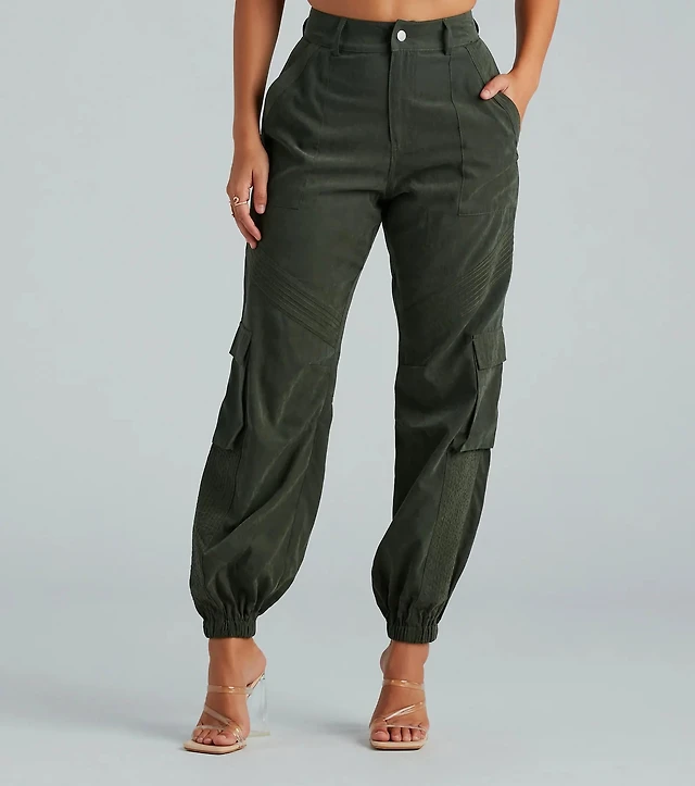 Movin' On Up High-Rise Parachute Cargo Pants