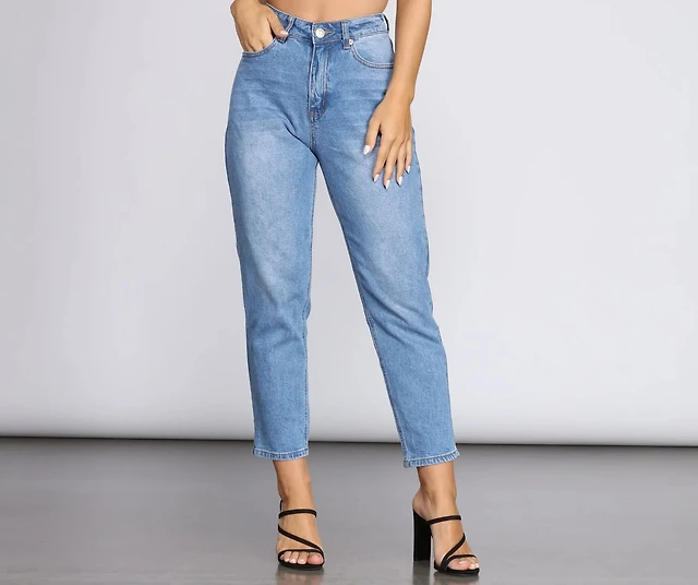 High Rise Distressed Mom Jeans