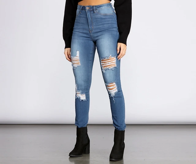 High Rise Super Destructed Skinny Jeans