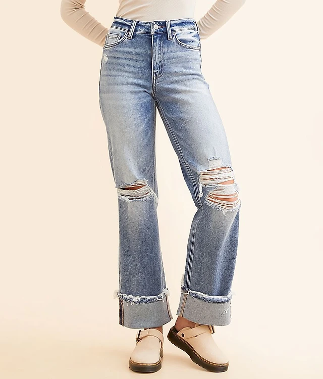 High-Rise Slit Hem Bootcut Jean