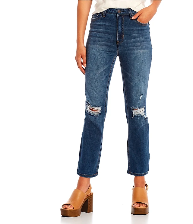 Bayeas Stretch Denim High Rise Straight Leg Ankle Jeans