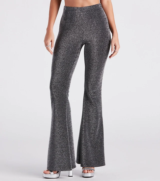 Glitzy Vibes Rhinestone Knit Flare Pants