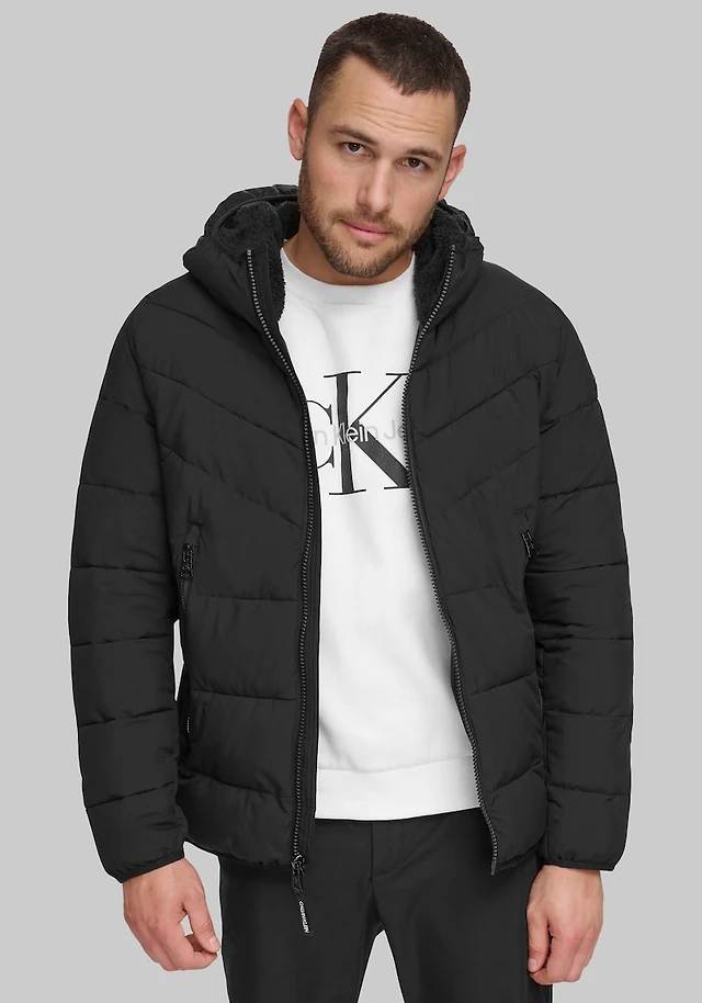 Men's Calvin Klein Tailored Fit Hooded Stretch Jacket at Jos. A. Bank, Black,