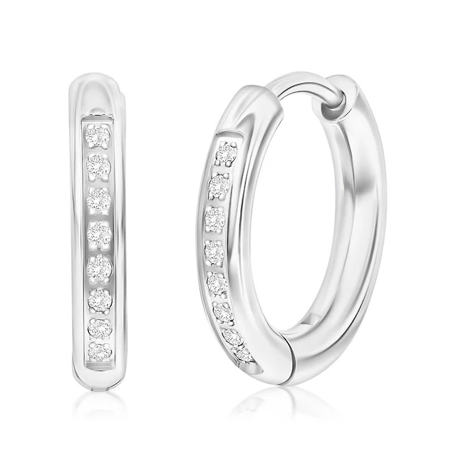 Huggie Hoops with Pearl and Clasp in White Gold Plated or 14K Gold Plated