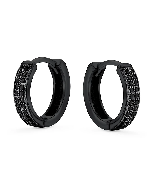 Bling Jewelry Black Pave Cz Cubic Zirconia Micro Pave 2 Row Huggie Hoop Earrings Cubic Zirconia Ip Black Sterling Silver .30 Diameter