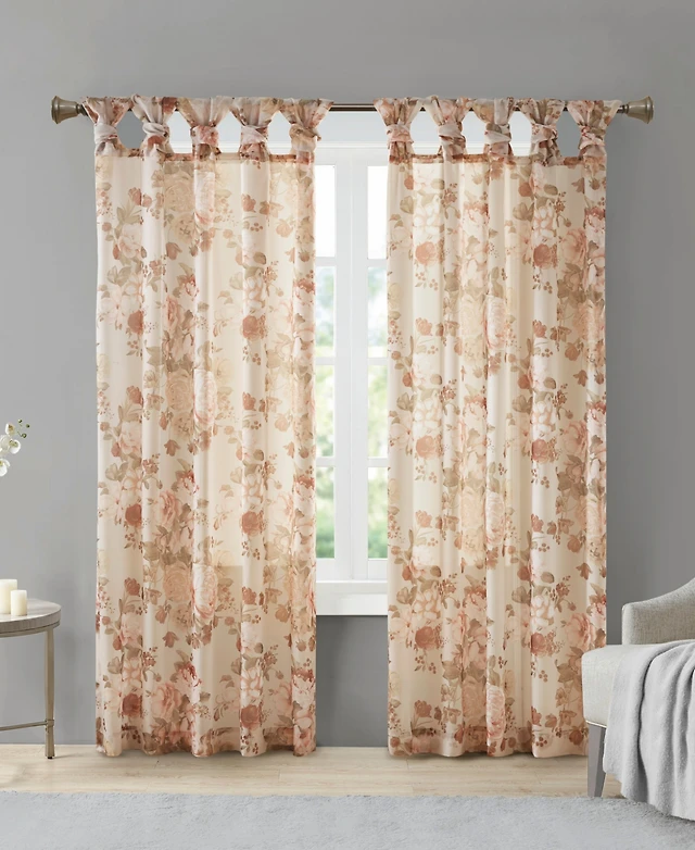 Ellie Floral Print Sheer Rod Pocket Curtain Panel