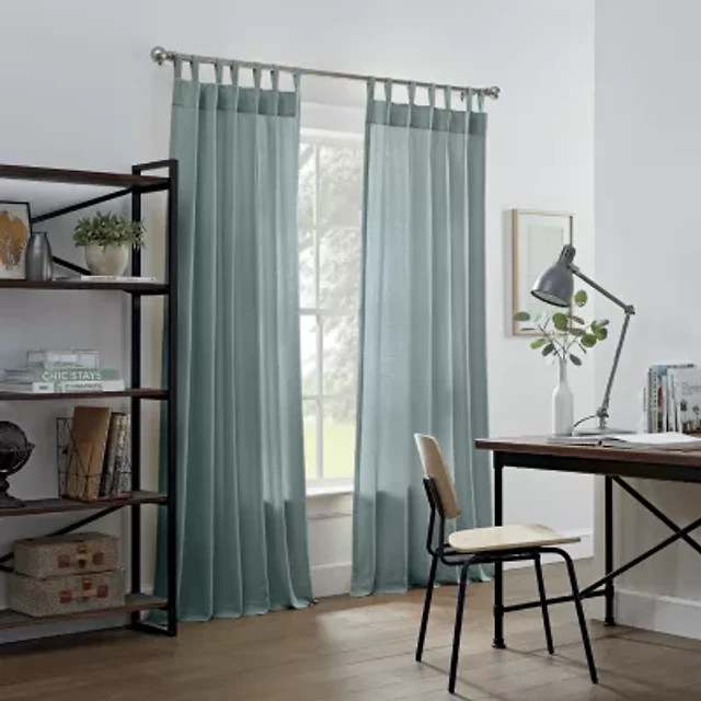 Habitat 100% Polyester Paloma Sheer Broomstick Crushed Solid Dual Header Curtain Panel 52" x 84" Khaki