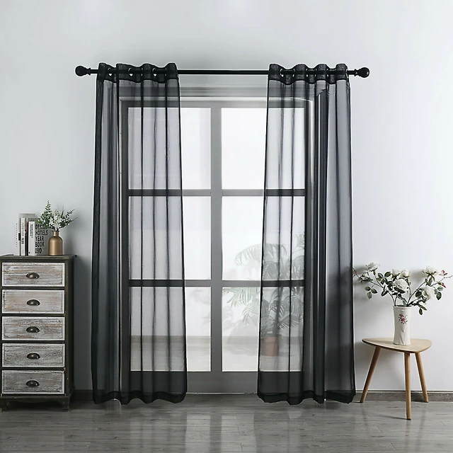 Hlc.Me Emily Faux Linen Semi Sheer Light Filtering Transparent Grommet Lightweight Window Curtains Drapery Panels 2 Panels