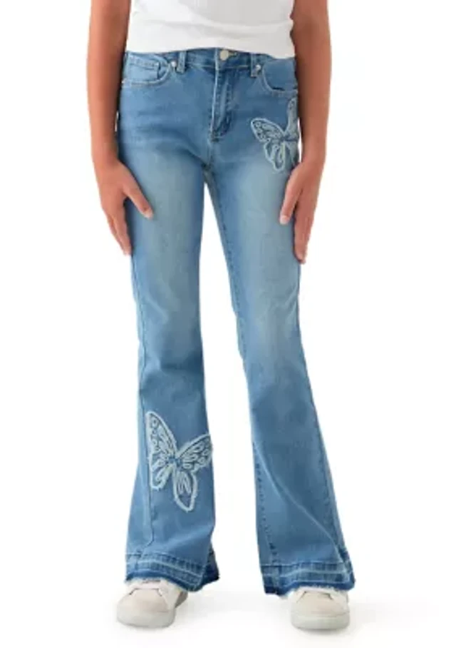 Girls 7-16 Gusset Embroidered Flare Jeans