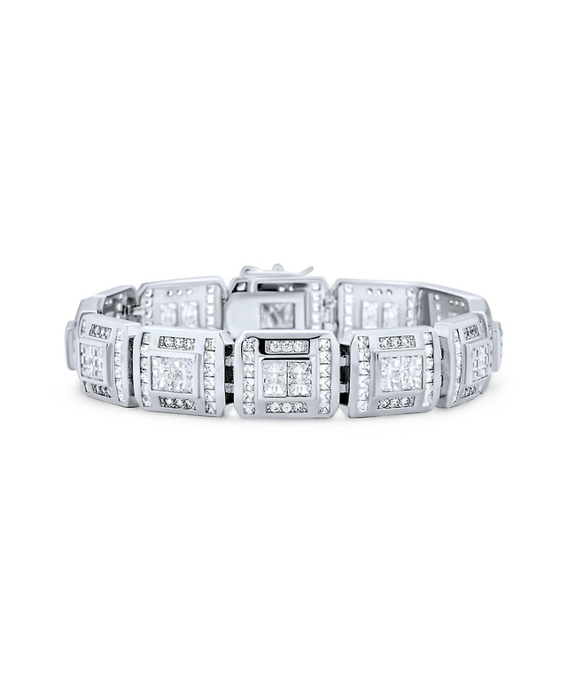 Lab Created Men's Sterling Silver White Gold Plated with Iced Out Cubic Zirconia Oblong Curb Chain Bracelet