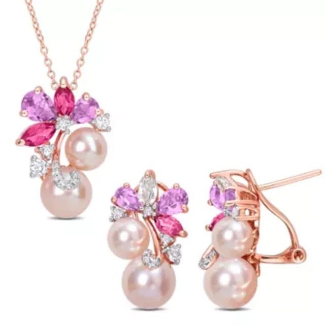 Pink Pearl & Rose de France Topaz Cluster Jewelry Set