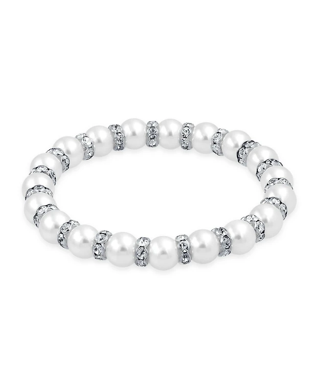 Bling Jewelry Simulated Pearl Stackable Strand Stretch Bracelet Crystal Rondelle Gold & Silver Plated Spacer