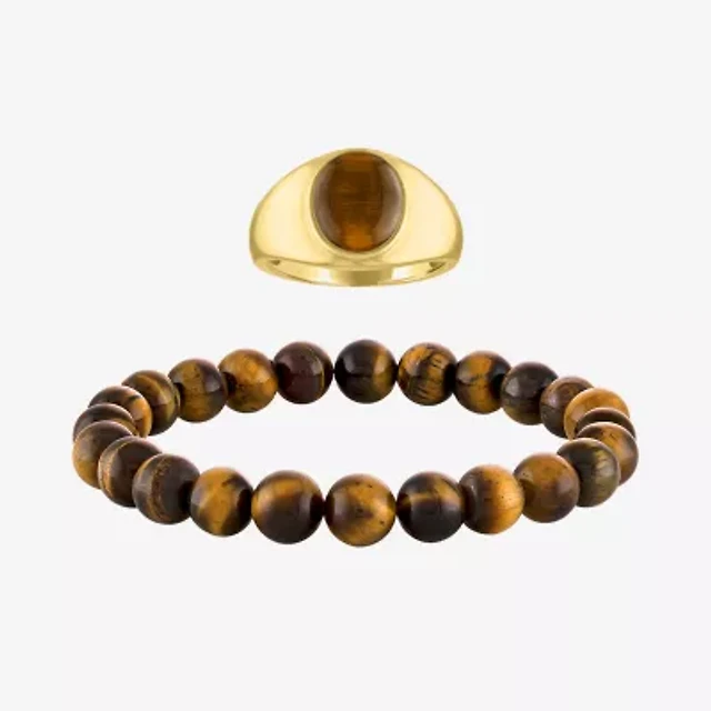 Mens Brown Tiger's Eye 14K Gold Over Silver 2-pc. Jewelry Set