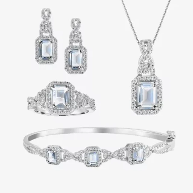 Womens 4-pc. Simulated Aquamarine & Cubic Zirconia Silver Over Brass Jewelry Set