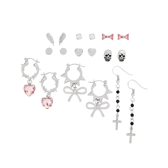 Edgy Coquette Dangle and Stud Earrings - 9 Pairs