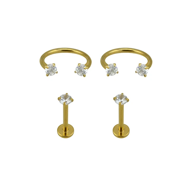 Multi-Pack Silvertone Wire Septum Rings and Horseshoe Ring 3 Pack - 16 Gauge