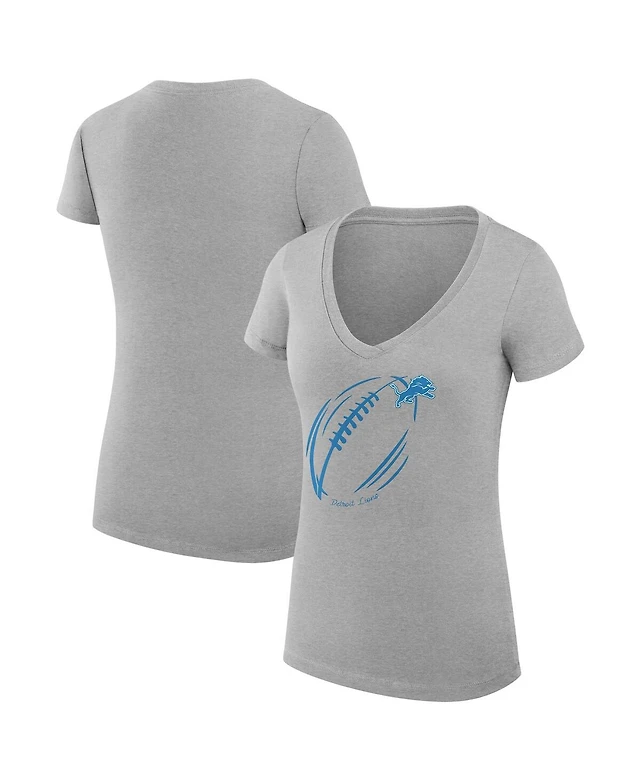 G-iii 4Her by Carl Banks Women's Heather Gray Detroit Lions Super-Slim Fit Lightweight Subtle Football V-Neck T-Shirt