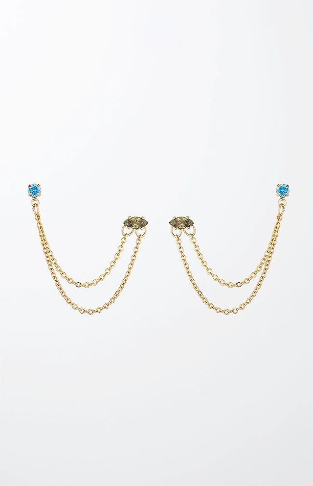 14K Gold-Plated CZ Crown Stud Earrings - 20 Gauge