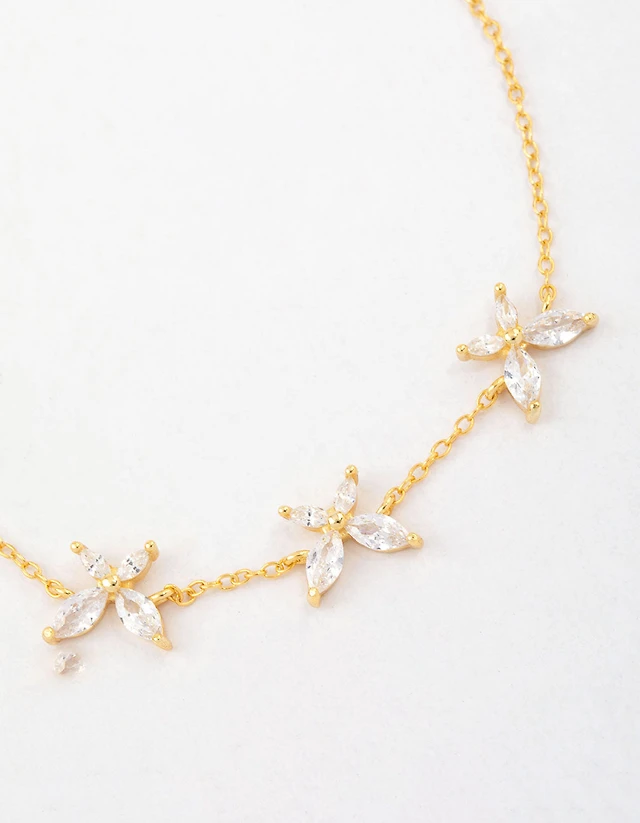 Gold Plated Sterling Silver Cubic Zirconia Droplet Pendant Necklace
