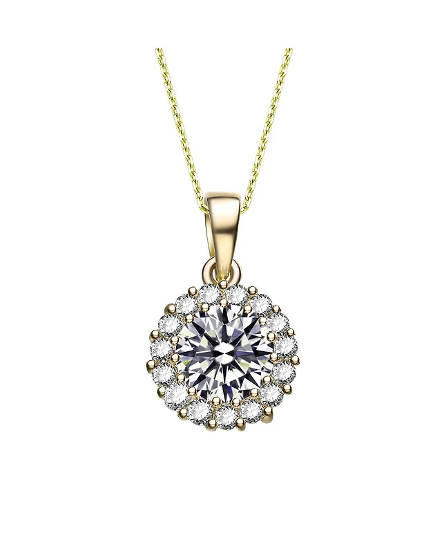 Sterling Silver with Colored Round Cubic Zirconia Halo Necklace