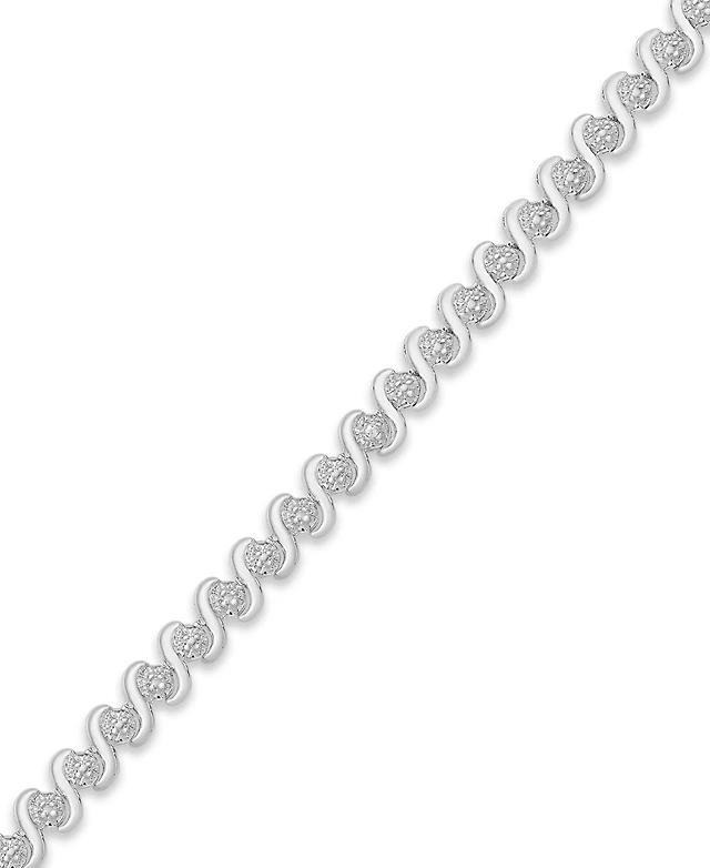 Diamond Accent "S" Link Bracelet in Silver Plate, Rose Gold or Gold Plate