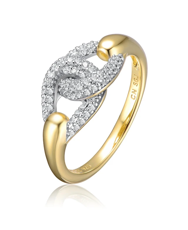 Sterling Silver Adults 14k Yellow Gold Plated with Cubic Zirconia Open Link Stacking Ring