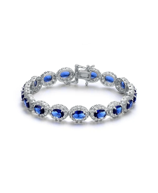 Genevive Sterling Silver Oval Colored Cubic Zirconia Stylish Tennis Bracelet