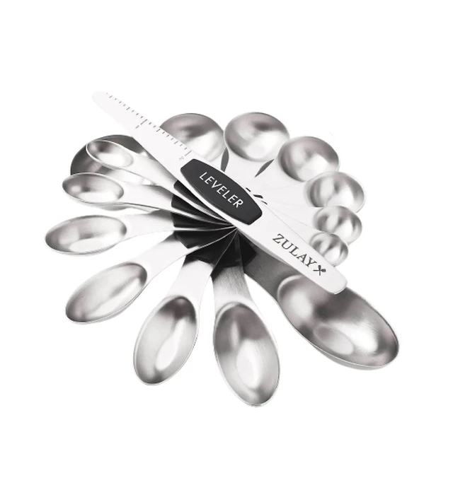 Premium Stainless Steel Magnetic Measuring Spoons, 8 Piece Set with Leveler
