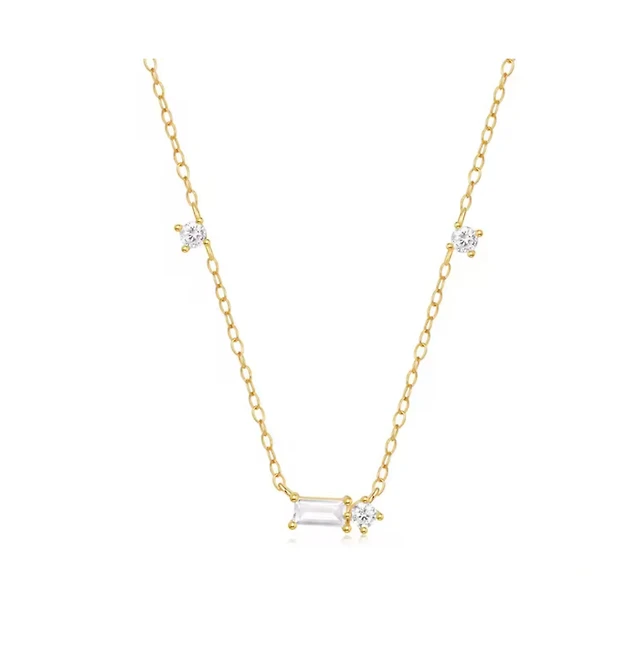 Hollywood Sensation 18K Gold Plated Sterling Silver Necklace with Three Round Cut and One Emerald Cut Cubic Zirconia Stones