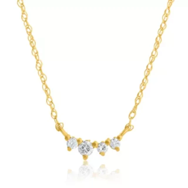 Silver Treasures Delicates 3 Stone Womens Cubic Zirconia 14K Gold Over Brass Bar 18 Inch Pendant Necklace