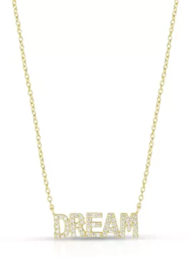 Lab Created 14K Gold Plated with Clear Cubic Zirconia Chain Rectangle Pendant Necklace for Kids/Teens