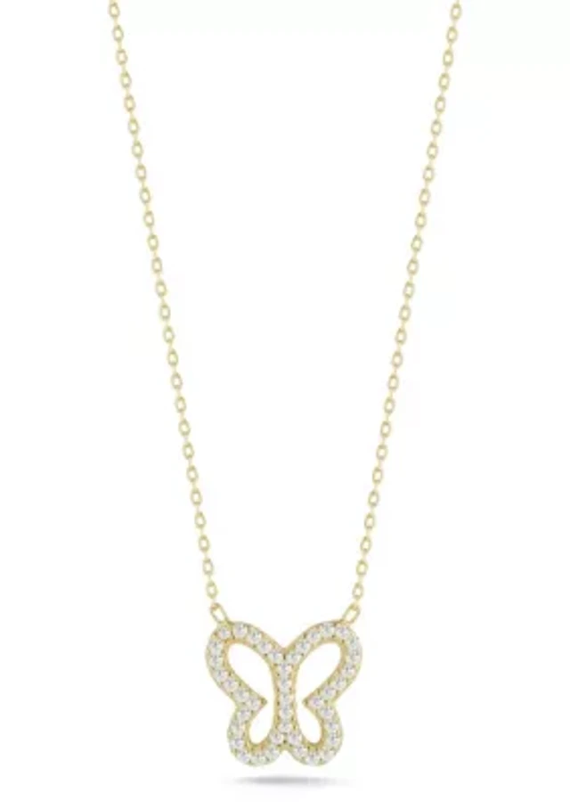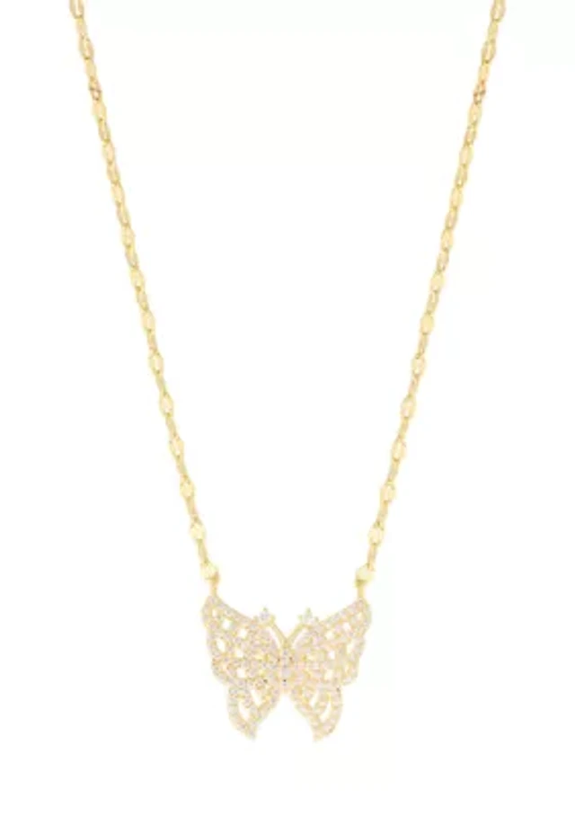 Cubic Zirconia Dragonfly Pendant 18" Necklace in Sterling Silver with 12K Rose and Green Gold