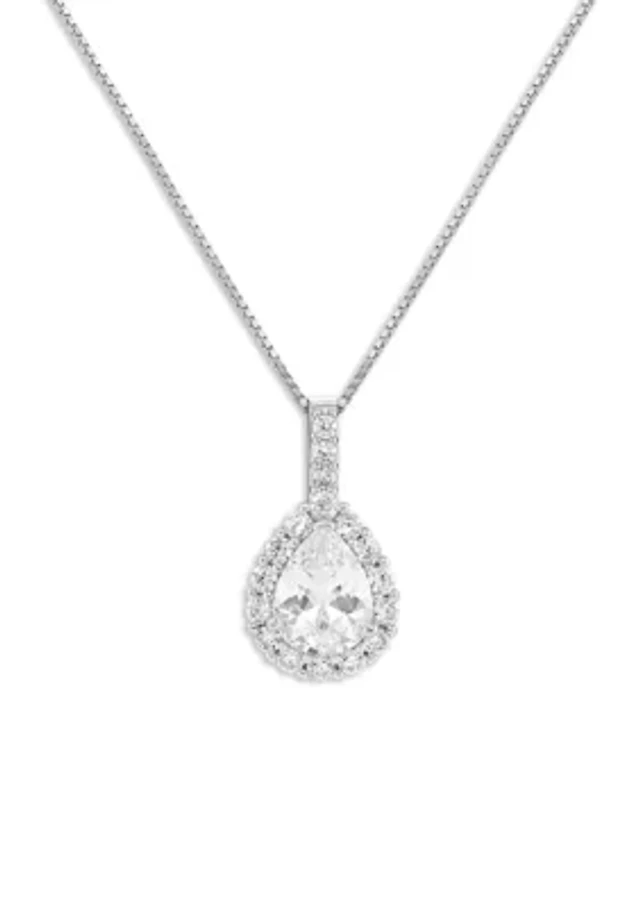 Sterling Silver Crystal Faceted Oval Pendant Necklace