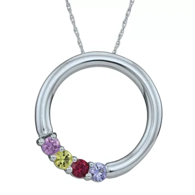 Personalized Simulated Birthstone Circle Pendant Necklace