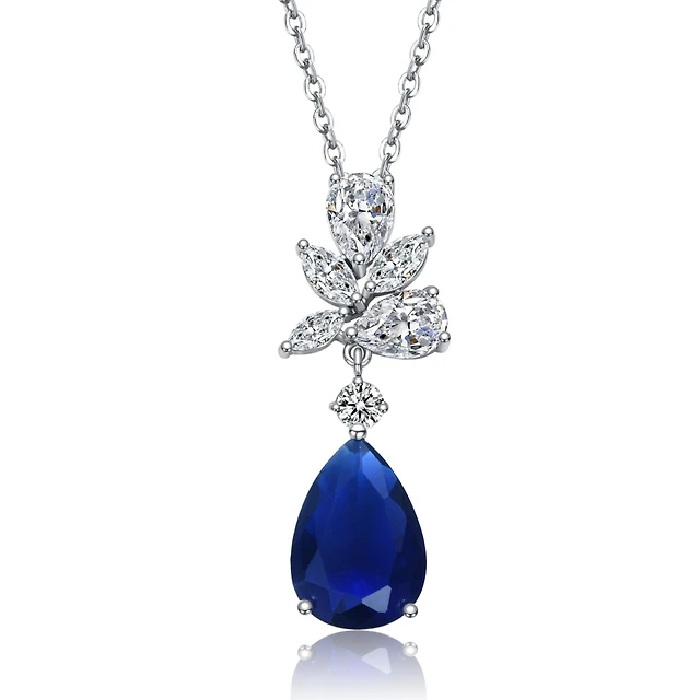 Womens Gemstone Sterling Silver Pear Pendant Necklace