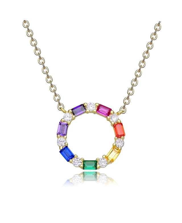 GiGiGirl 14K Gold Plated Rainbow Cubic Zirconia Circle Pendant Necklace