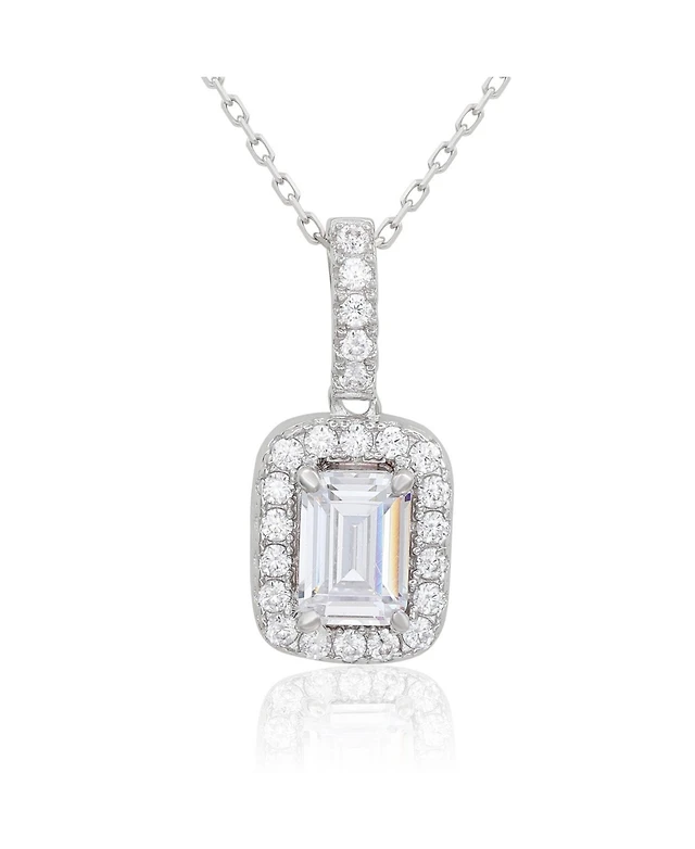 Swarovski Rhodium Plated Square Cut Color Birthstone Pendant Necklace