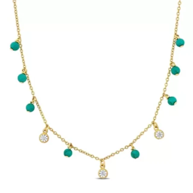 Rachel Glauber Classic Bezel Set Cubic Zirconia Chain Station Necklace