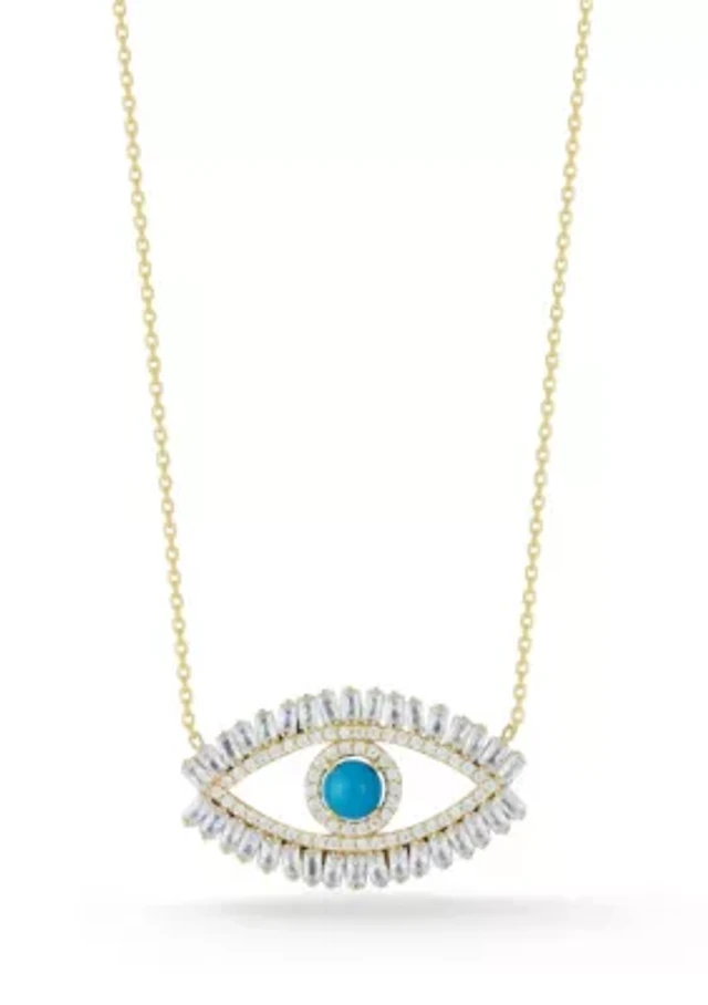 Rachel Glauber 14K Gold Plated with Blue & Clear Cubic Zirconia Station Necklace