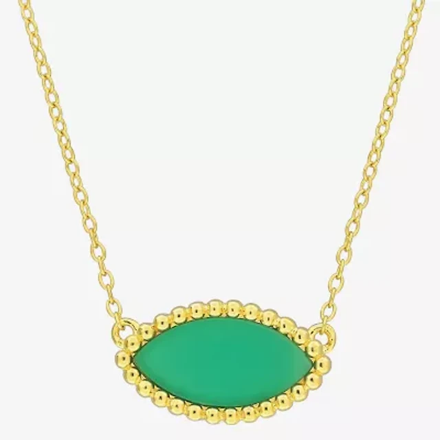 Womens Genuine Green Jade 18K Gold Over Silver 18 Inch Pendant Necklace