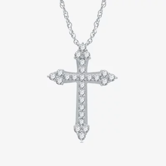 "Faith" Womens Diamond Accent Natural White Diamond Sterling Silver Cross 18 Inch Pendant Necklace