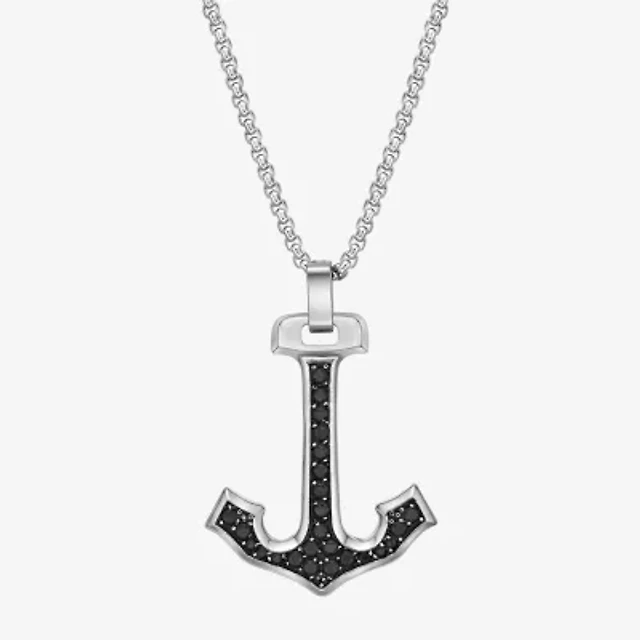 Mens 1/10 CT. T.W. White Diamond Stainless Steel Cross 24 Inch Pendant Necklace