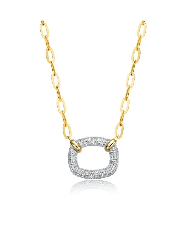 Rectangle-shaped 14k Gold-plated Chain With Round-brilliant stones Pendant Cubic Zirconia In Sterling Silver.