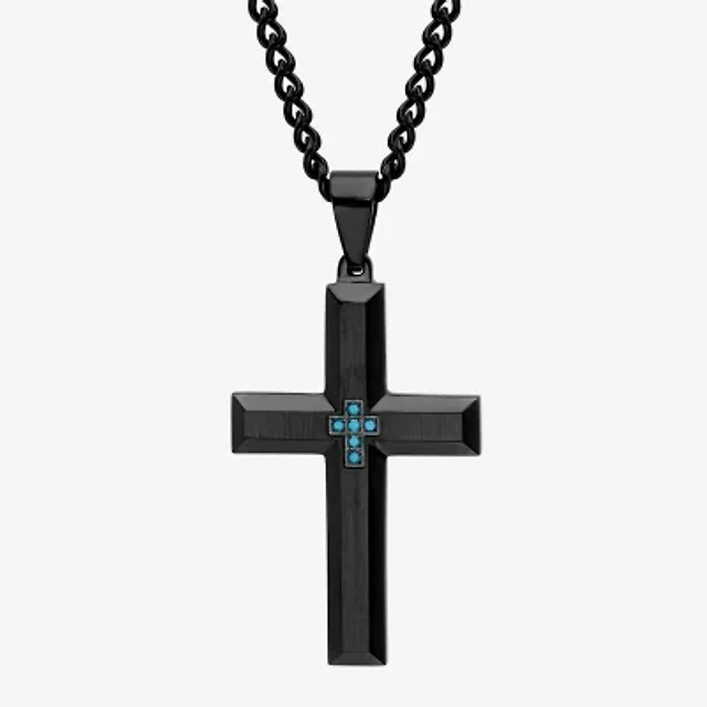 Mens 1/7 CT. T.W. Natural Black Diamond Stainless Steel Cross 24 Inch Pendant Necklace